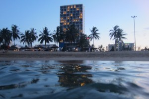 Swimming in the waters of the Nha Trang beach – so nice and relaxing! The sun was setting and appaarently, this is when everyone goes to the beach to swim. Used my handy underwater camera case to get this picture with our hotel in the distance. Fun times for AnThu’s bachelorette party in Nha Trang!